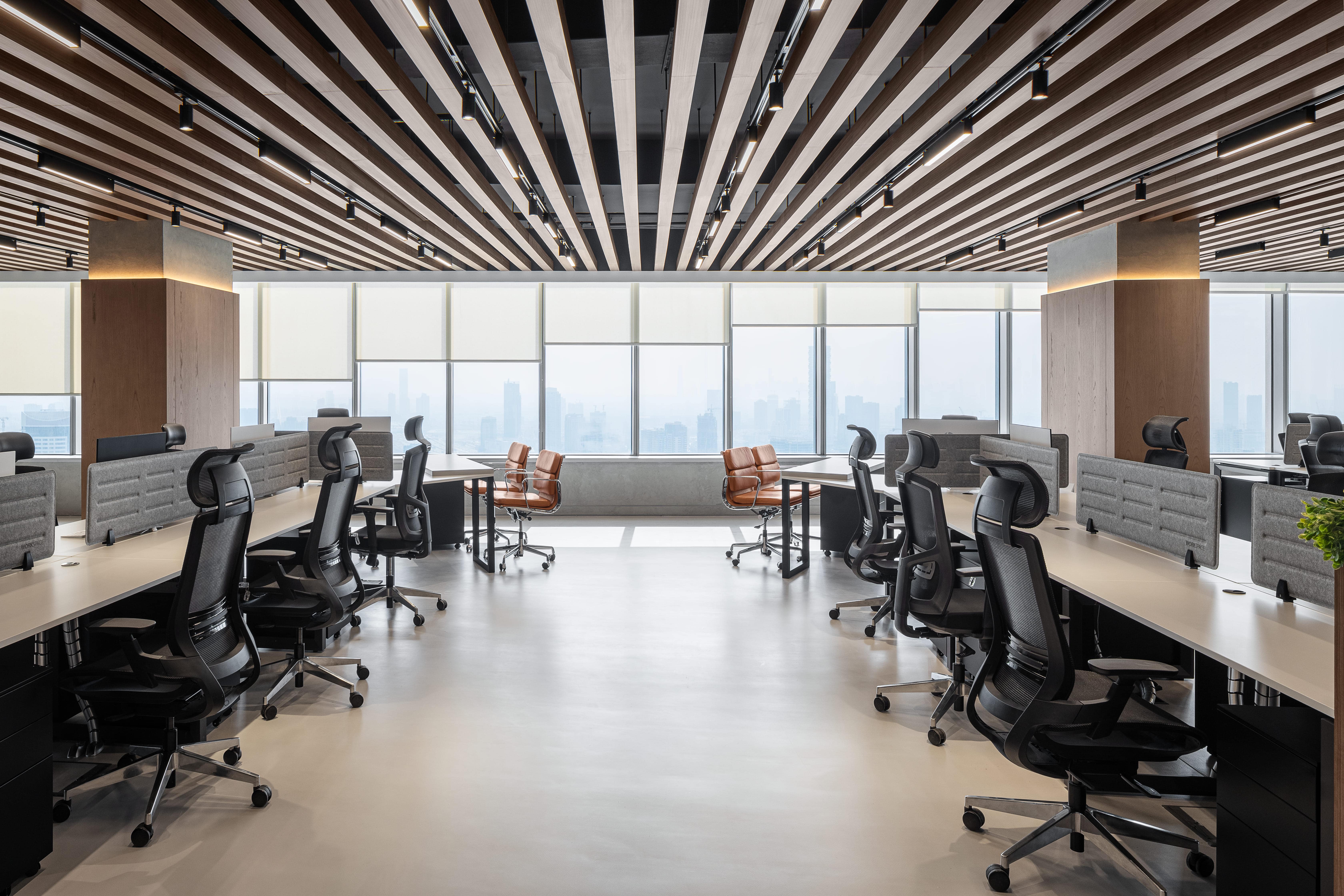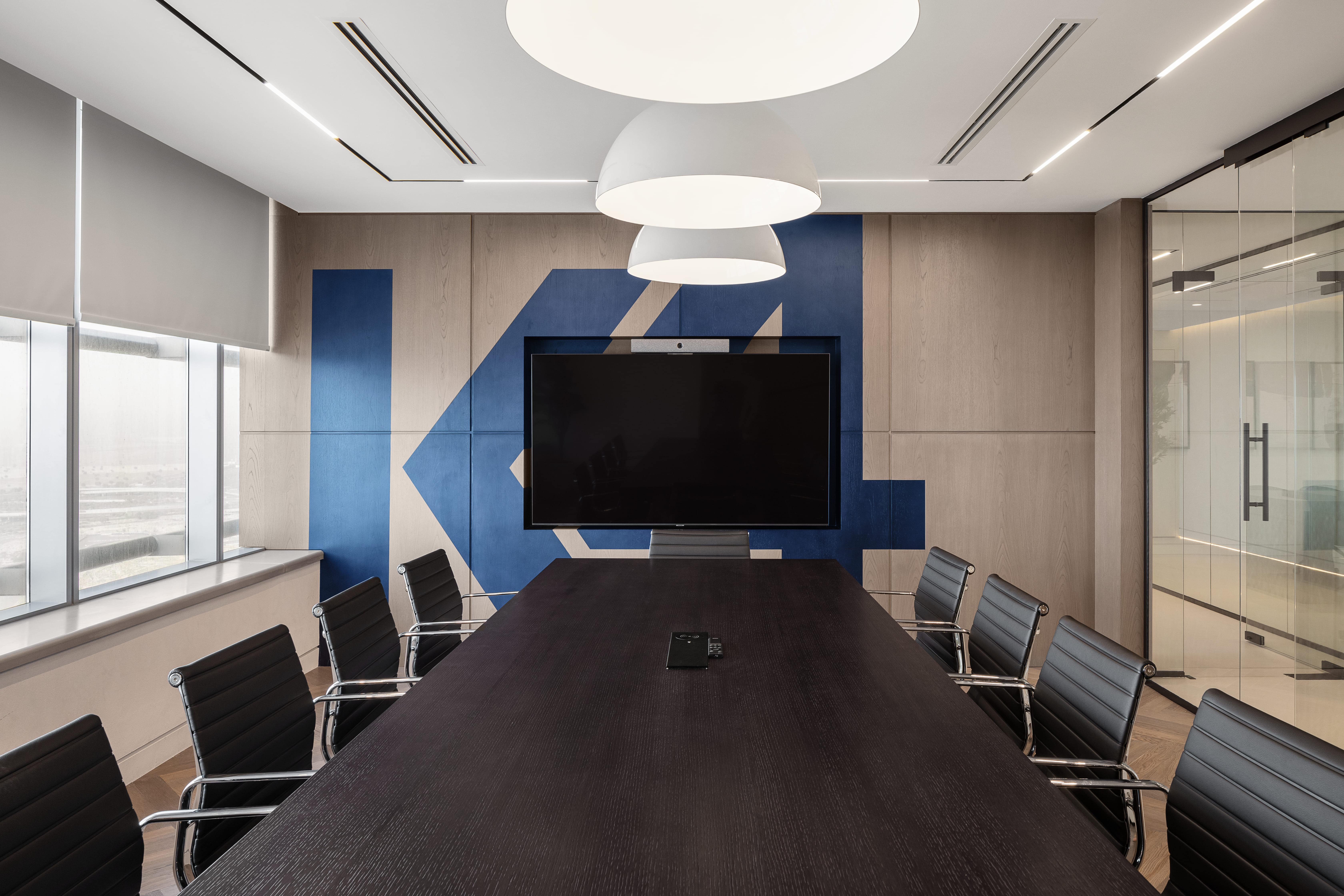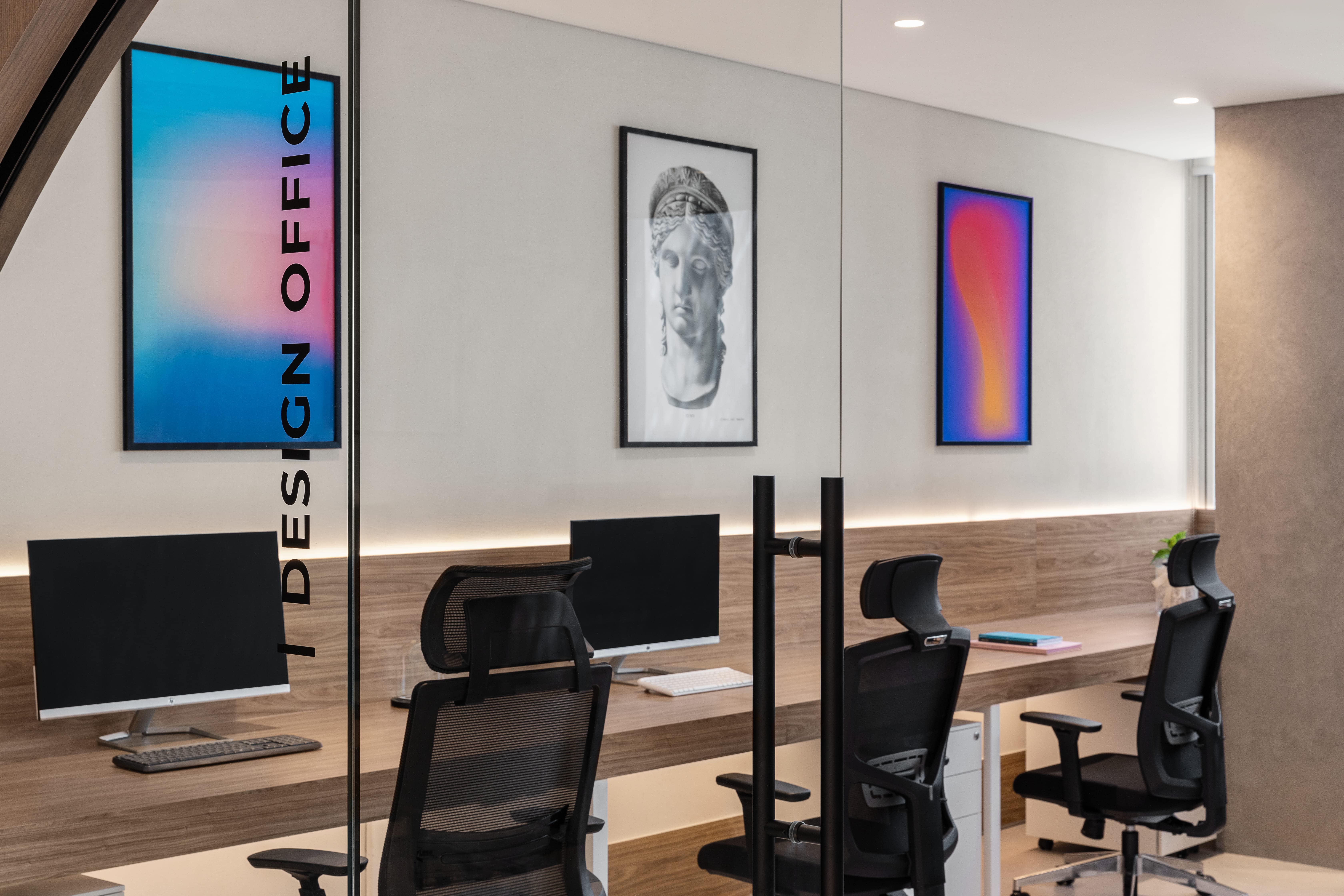 Our custom-crafted furniture, designed and built in-house, ensures ergonomic comfort and modern style. The use of natural wood finishes, sleek metal accents, and hidden lighting adds sophistication and warmth. State-of-the-art meeting rooms and collaborative spaces are seamlessly integrated with advanced technology.